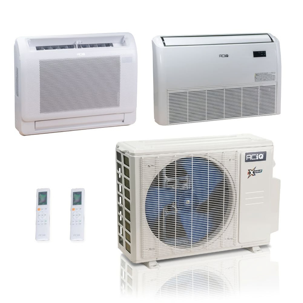 27,000 BTU ACiQ Extreme 23 SEER2 Dual Zone Floor Mount Mini Split Heat Pump System - R454B | 230V - 9 + 18
