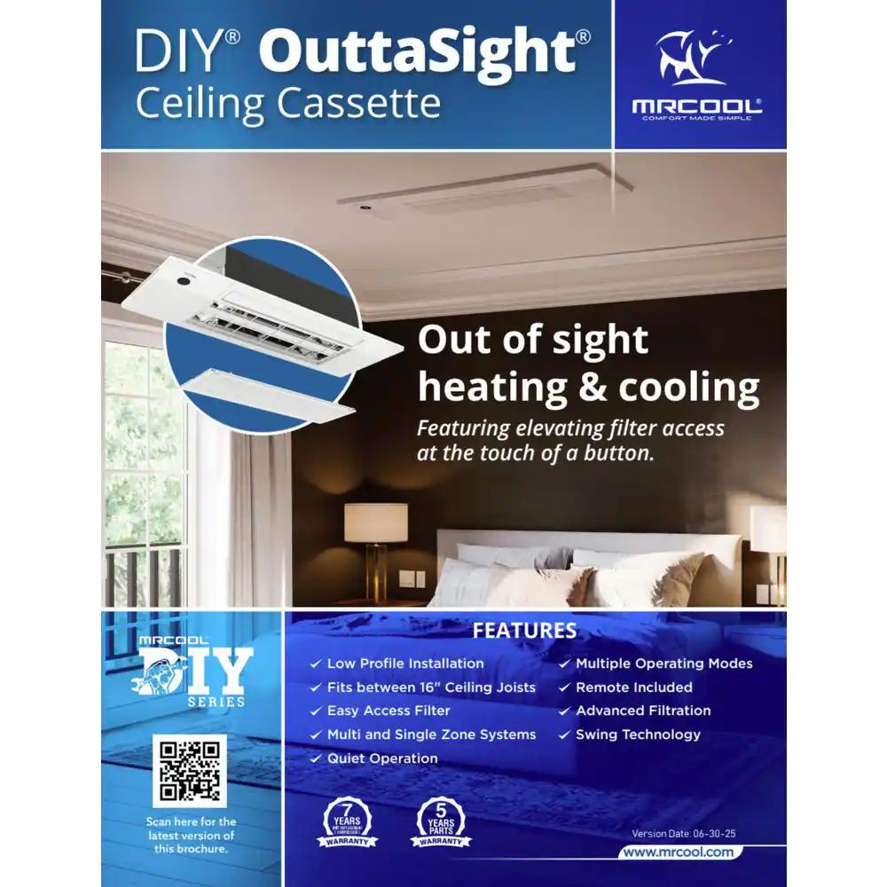 Works with the MRCOOL® OuttaSight®: A discreet ceiling cassette that's the perfect fit for any room, the MRCOOL® OuttaSight® is a low-profile heating and cooling solution that doesn't require ductwork or take up wall space.