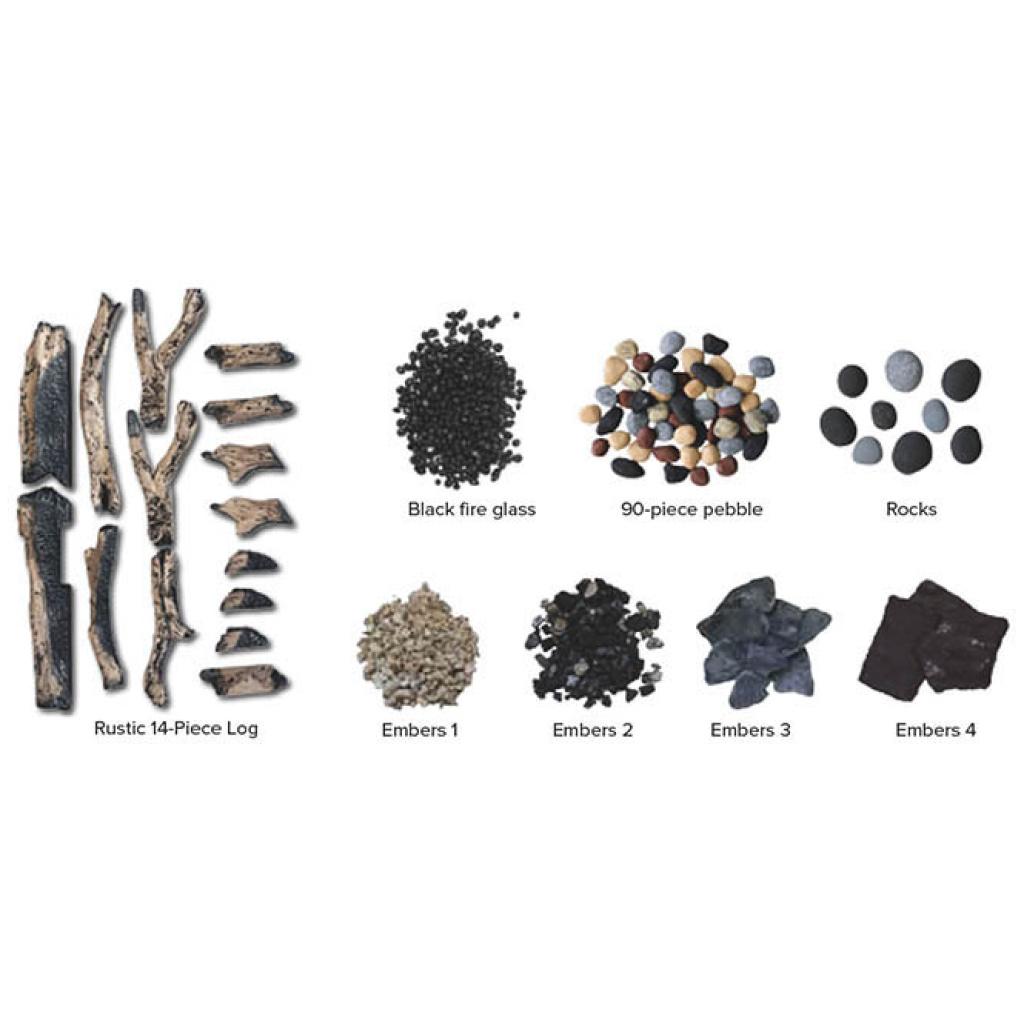 RUSTIC‐14 Piece Log set with deluxe media: stones, pebbles, black fire glass and embers.