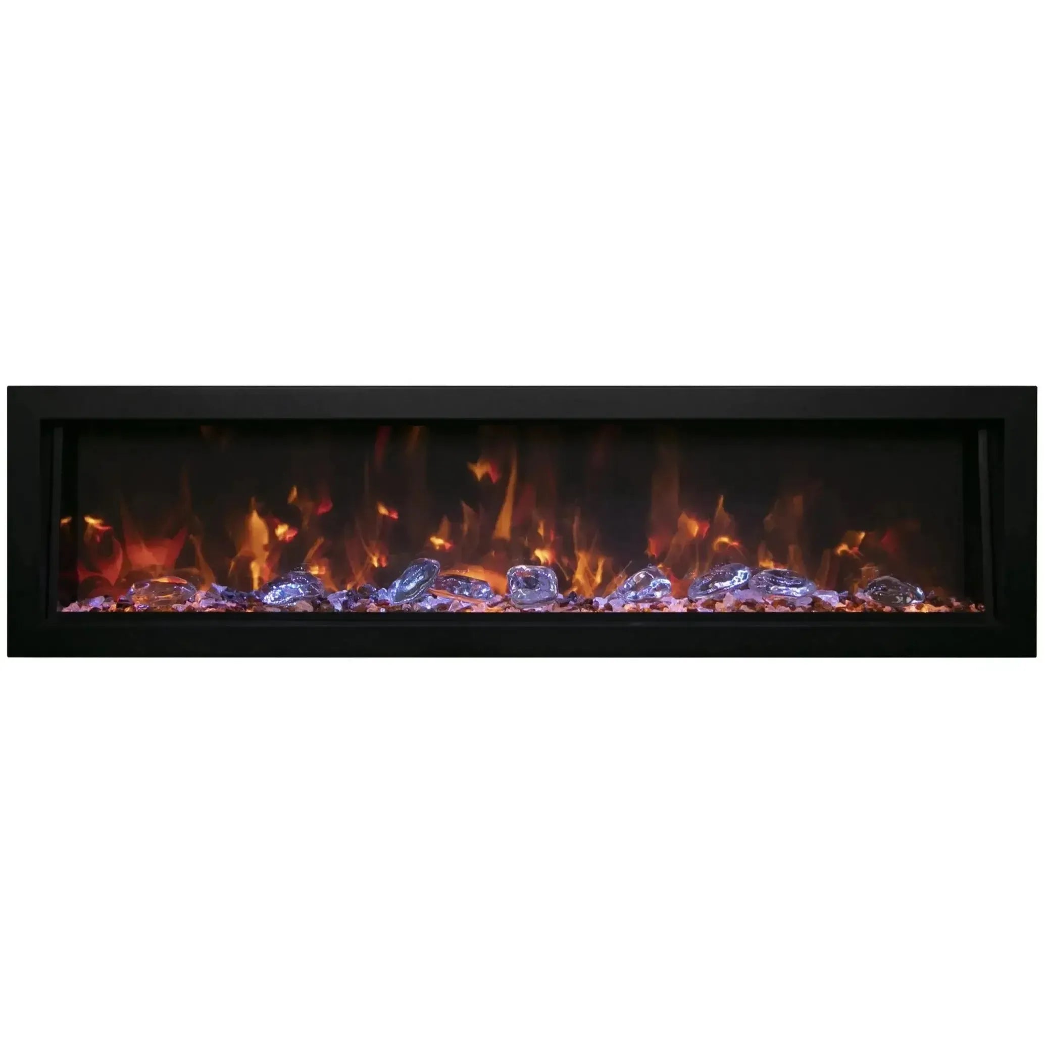 The Remii Deep Electric Fireplace includes Canyon Brown and Ocean Blue decorative media embers as well as a black steel surround and a remote.