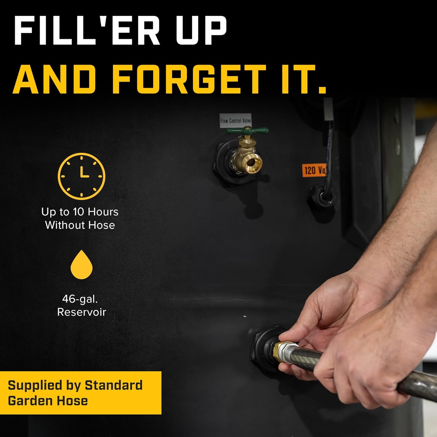 - 46-gallon reservoir provides up to 10 hours of hose-free operation