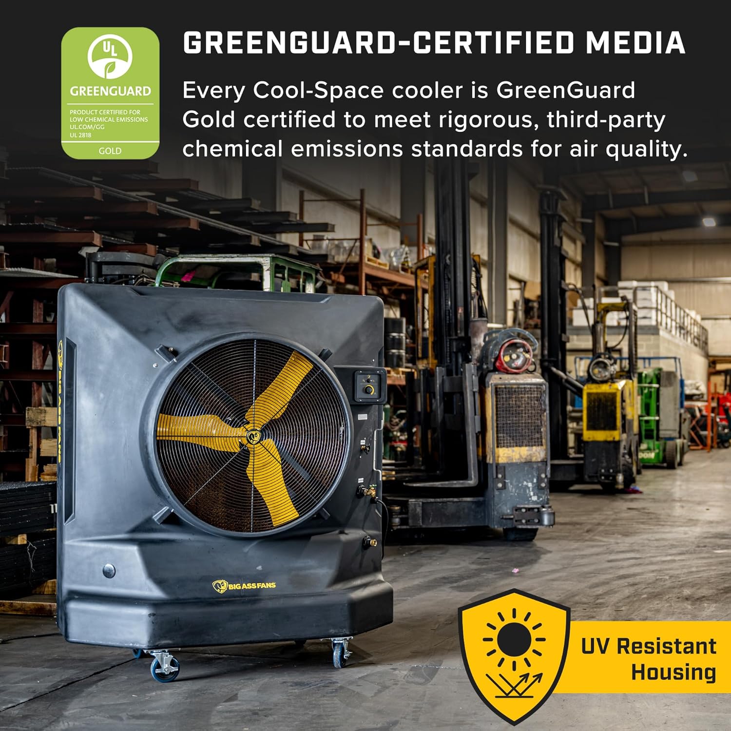- Ultimate Cooling Combo: When used in tandem with overhead fans, Cool-Space coolers provide maximum cooling and coverage, silently delivering comfort and energy savings to your facility without costly A/C use.