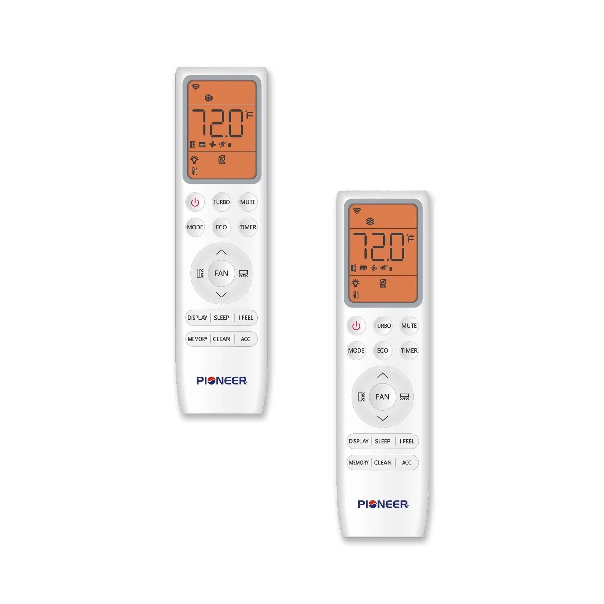 Pioneer brand multi split heat pump system, complete set. System components include: one multi zone outdoor unit, matching multiple wall mount indoor units, piping and accessory kits and remote controllers. Pioneer Quantum Ultra multi split systems are available in 5 versions; for 2, 3, 4, and 5 zones.
