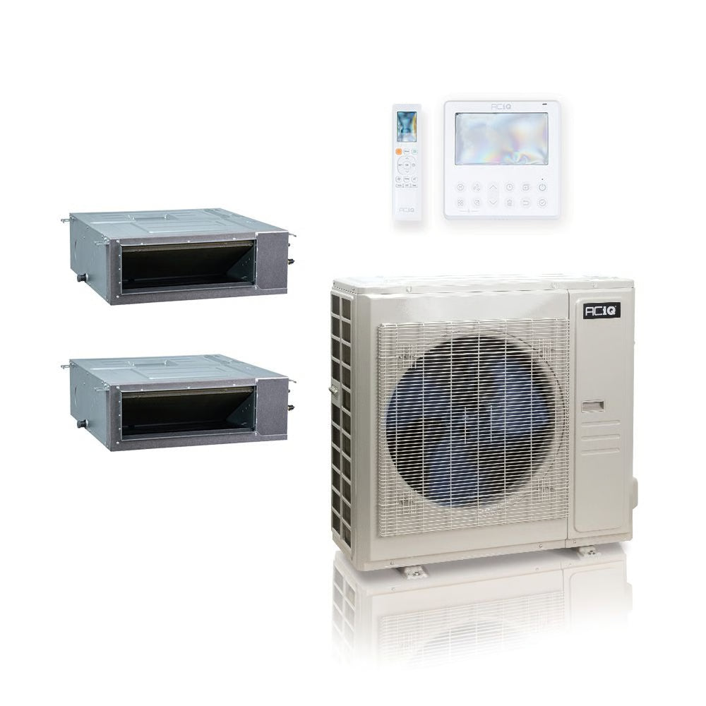 48,000 BTU ACiQ Standard 20.4 SEER2 Dual Zone Concealed Duct Mini Split Heat Pump System - R454B | 230V - 18 + 18