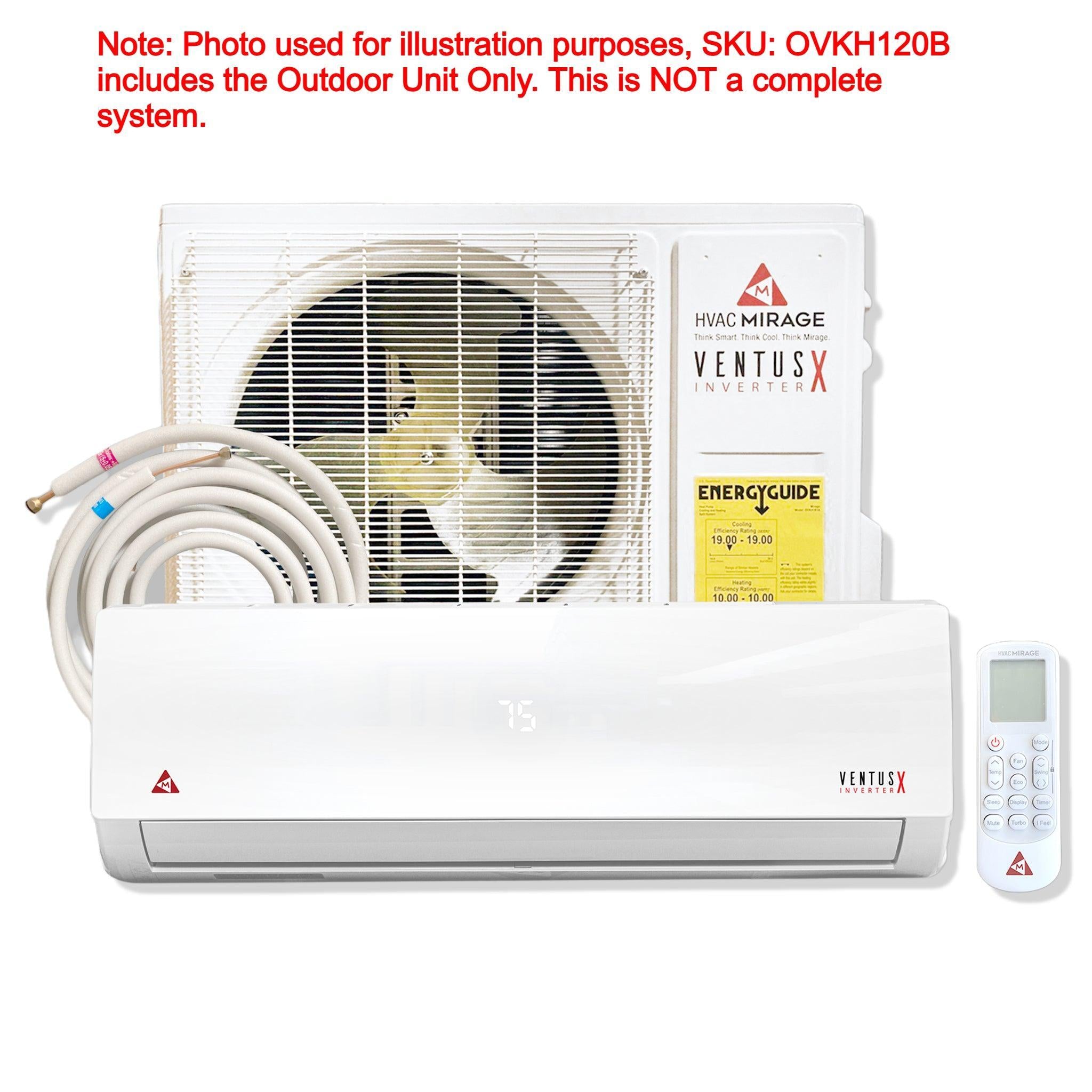 Do not purchase SKU OVKH120B if you need a complete system, you may find the full system here: HVAC Mirage® Ventus X 12,000 BTU 19 SEER Ductless Mini Split Air Conditioner and Heat Pump - 230V/60Hz