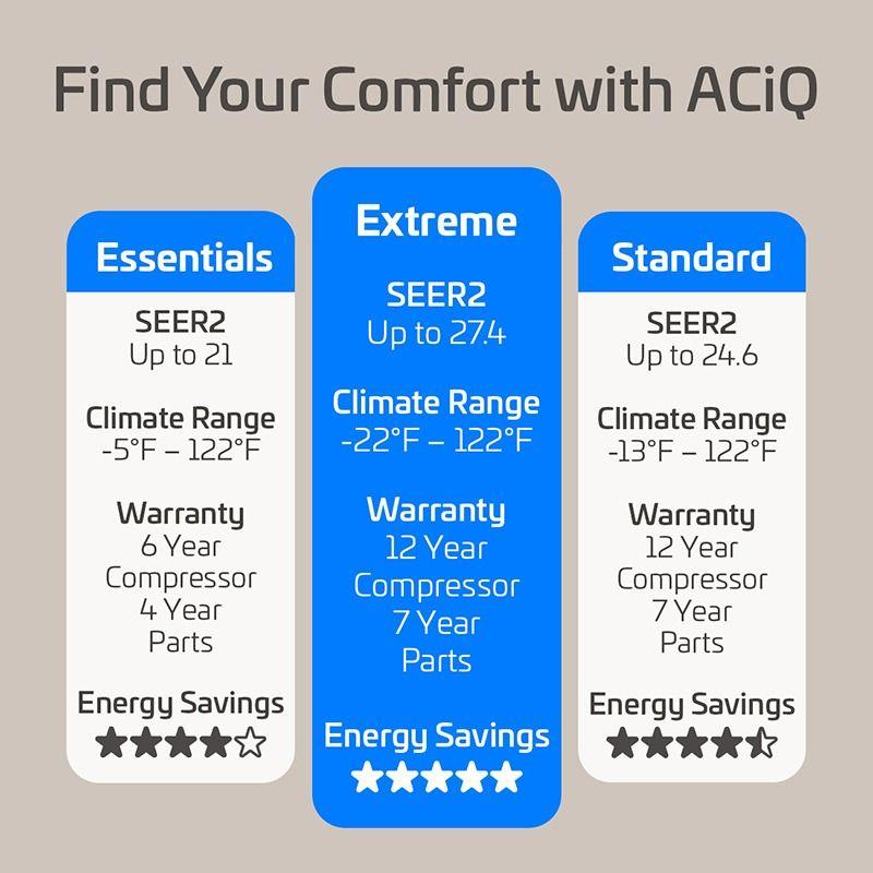 The ACiQ Platinum series makes ultra-high efficiency heating and cooling affordable for everyone. With SEER as high as 21 and HSPF as high as 12 you can experience the high performance and maximum efficiency that usually costs much more.
