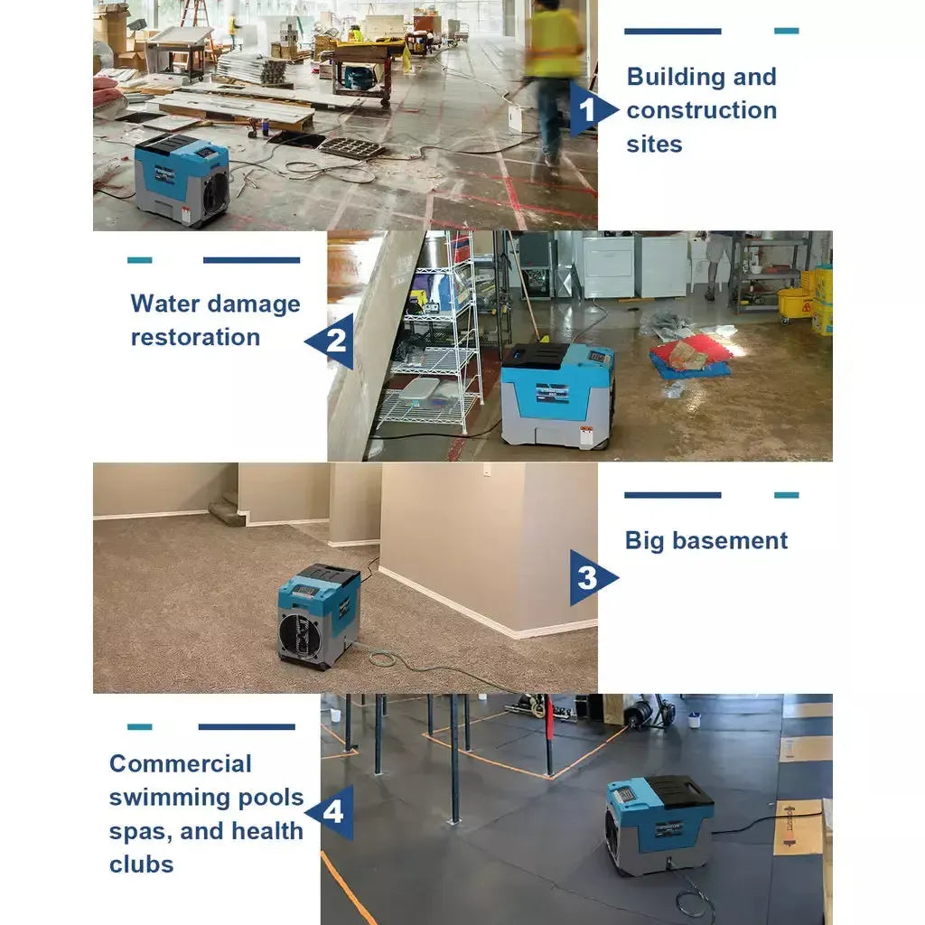 Commercial, Industrial, and Personal Use: With the new design and layout of the machine, the volume of the whole machine is 40% smaller than others on the market, Ideal for Removing Damp and Moisture from Flood & Restoration, Carpet Cleaning, Basements/Cellars, Laundries, De-Flooding, or anywhere you need to extract moisture at a professional level. The built-in pump lets drying work hard overnight or continuously for days at a time without you worrying about it.
