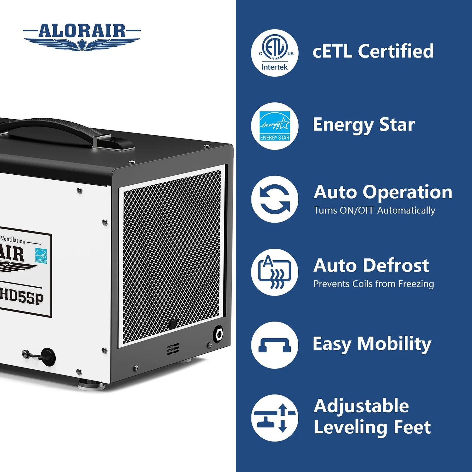 - Energy Star Dehumidifier: ALORAIR Dehumidifier can remove 55 pints per day at AHAM condition, 120 Pint at saturation, up to 1,500 sq. ft, fit for any basement, crawl space, storage area, garage, large room, or commercial use. quickly and effectively removes moisture with less energy than conventional dehumidifiers without racking up the energy bill, saving money