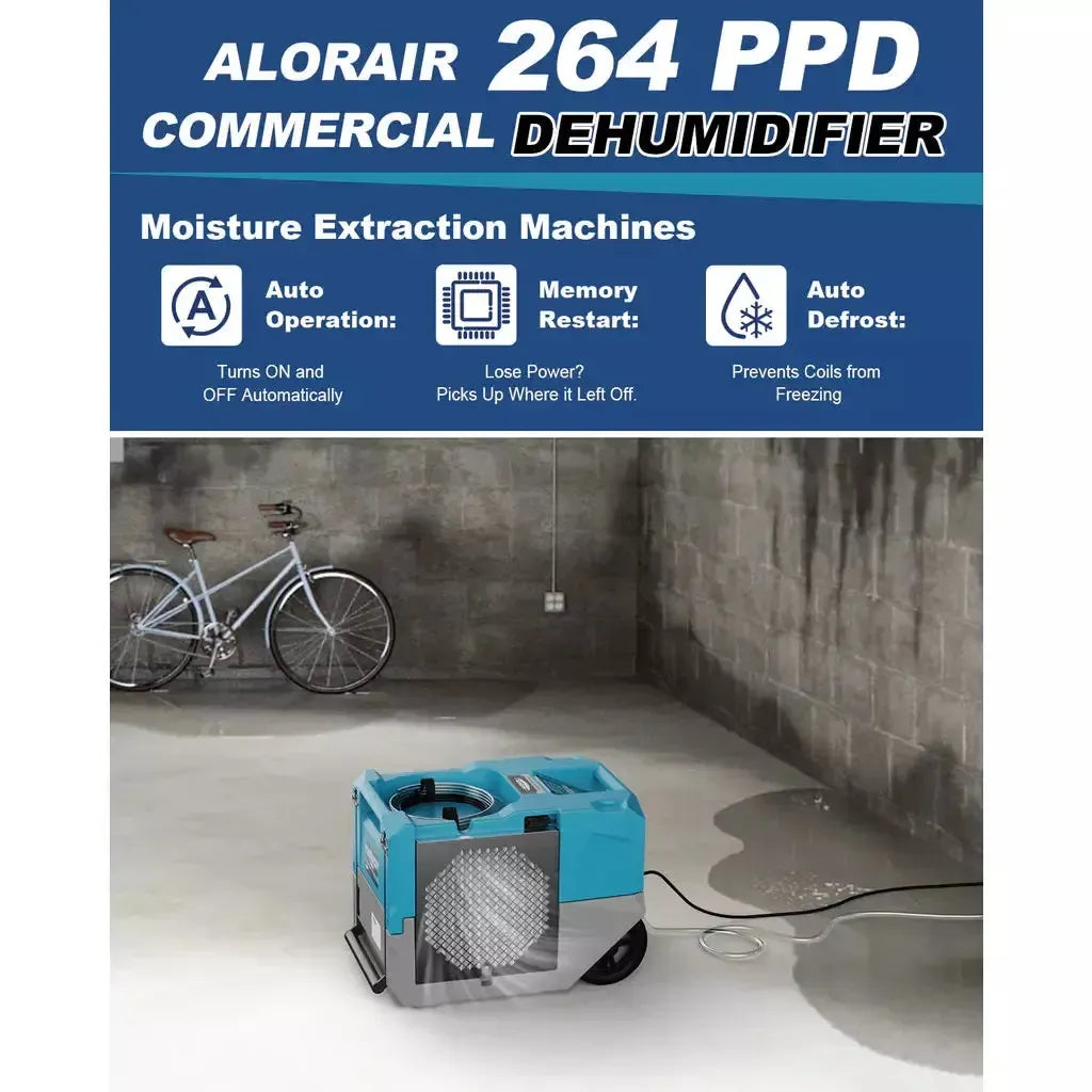 264 PPD Dehumidifier: Removal 264 PPD at Saturation condition and 125 PPD at AHAM only with 8.1A, this large capacity dehumidifier works well for urgent Disaster Restoration, fast structural drying, and other jobs that require fast drying.