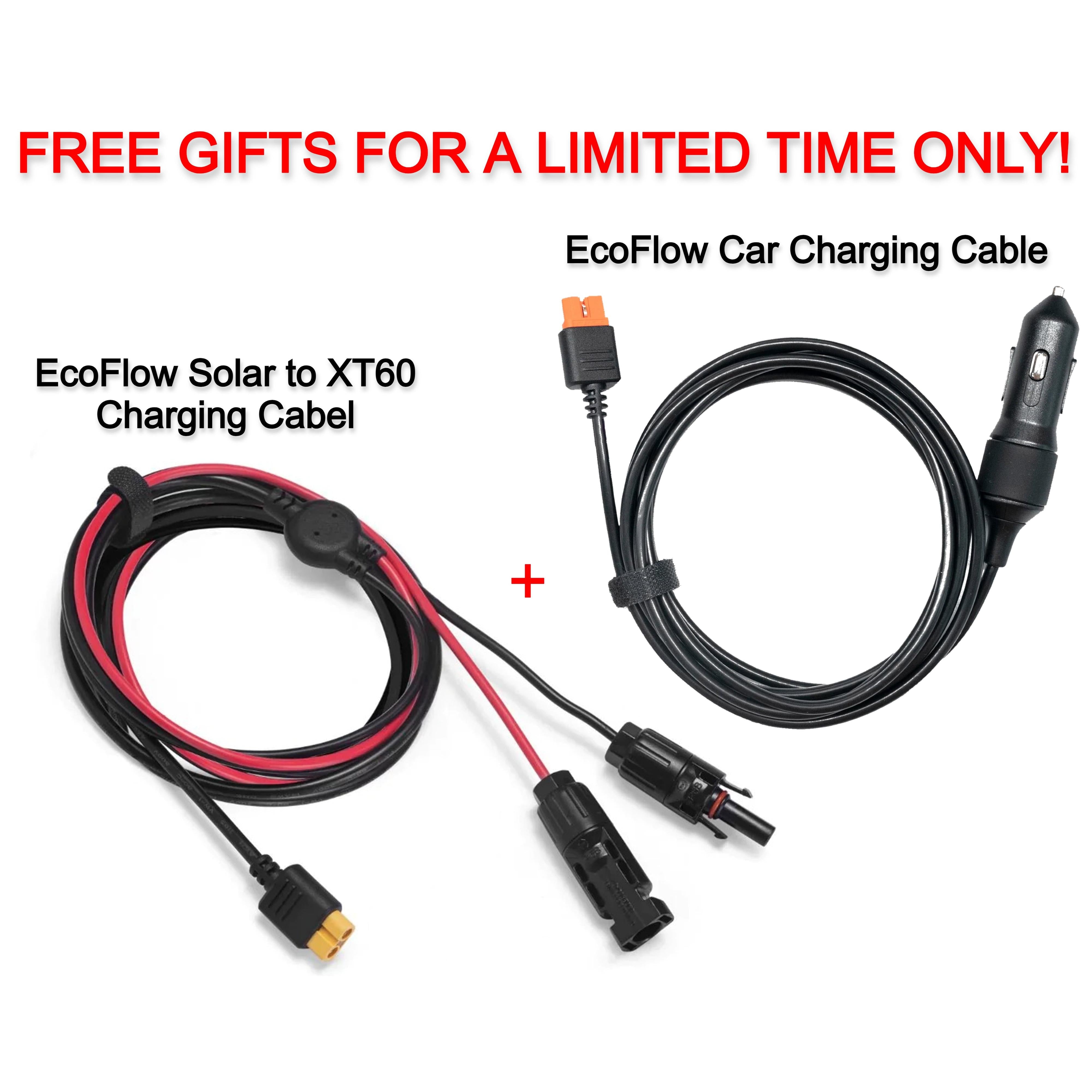 Free EcoFlow Solar to XT60 Charging Cable + EcoFlow Car Charging Cable for EcoFlow Power Stations ($49.99 Value) with the purchase of select products for a Limited Time Only!