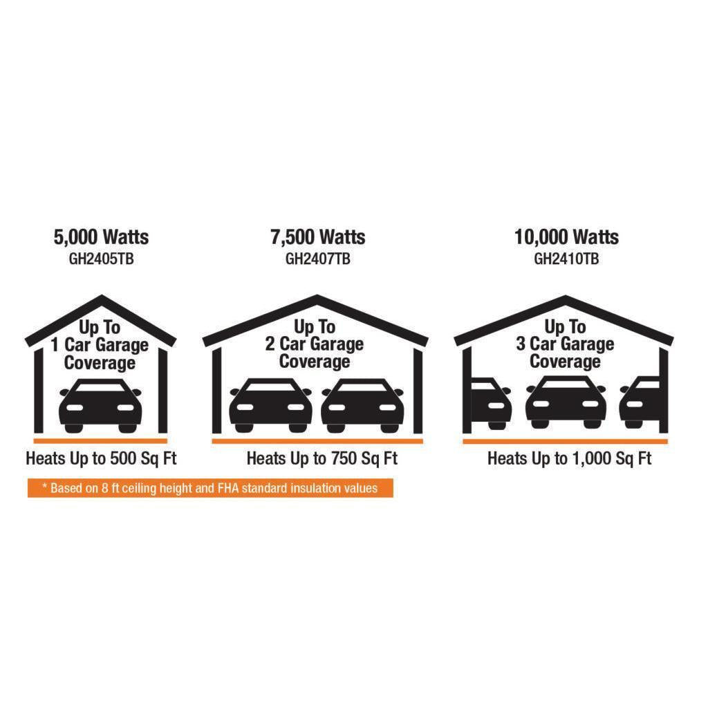 King Electric Garage Heater with Bracket and Thermostat 240V 1PH 10000W - GH2410TB