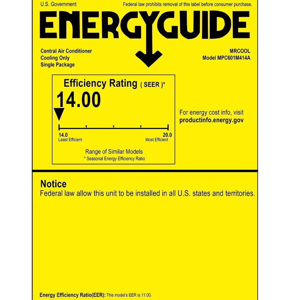 This is a brand new 5 ton, 208-230 volt, R410-A refrigerant, MRCOOL packaged air conditioning. This air conditioner unit has a seasonal energy efficiency rating of 14 SEER, providing maximum comfort cooling. This unit only provides "cooling" (this is NOT a heat pump).