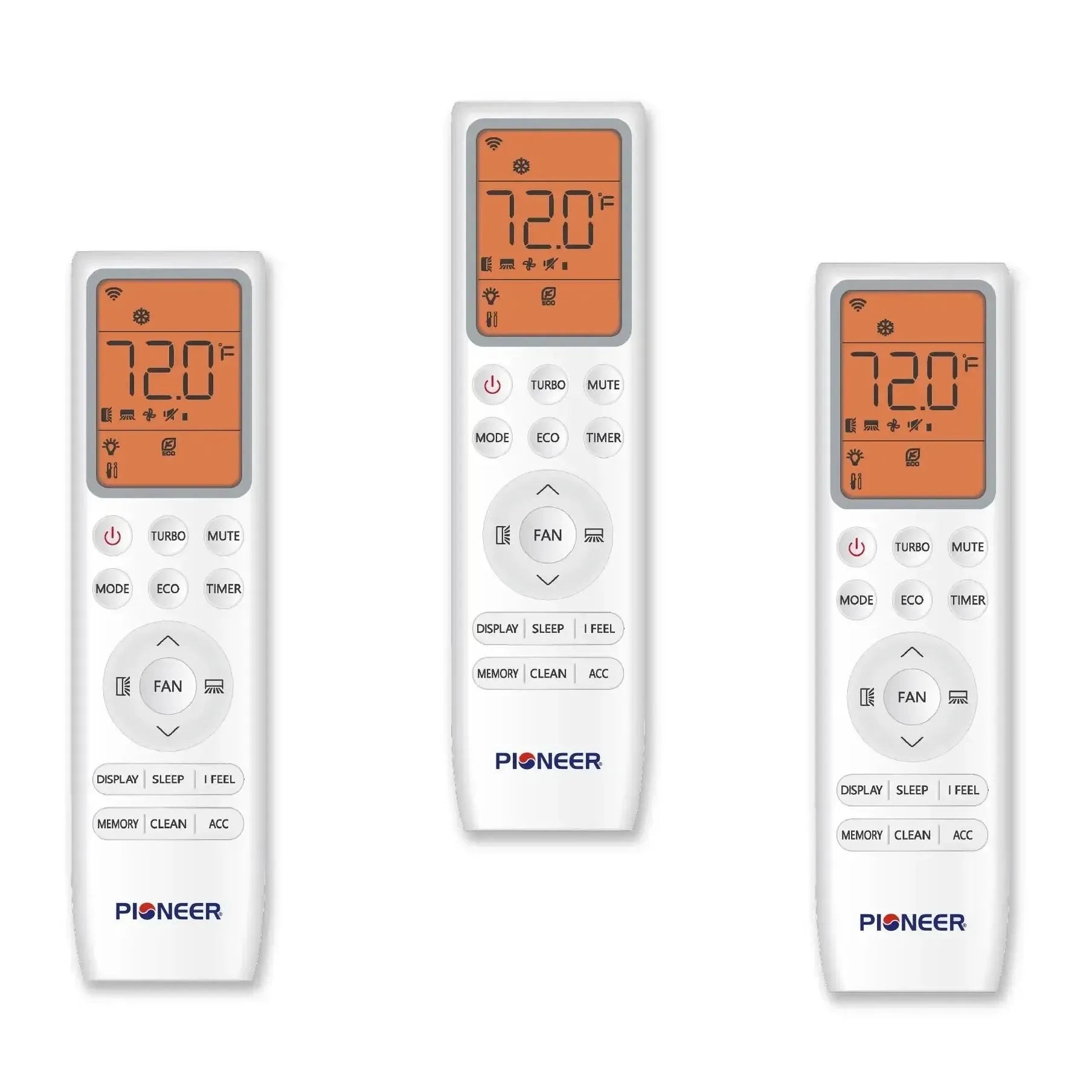 Pioneer brand multi split heat pump system, complete set. System components include: one multi zone outdoor unit, matching multiple wall mount indoor units, piping and accessory kits and remote controllers. Pioneer Quantum Ultra multi split systems are available in 5 versions; for 2, 3, 4, and 5 zones.