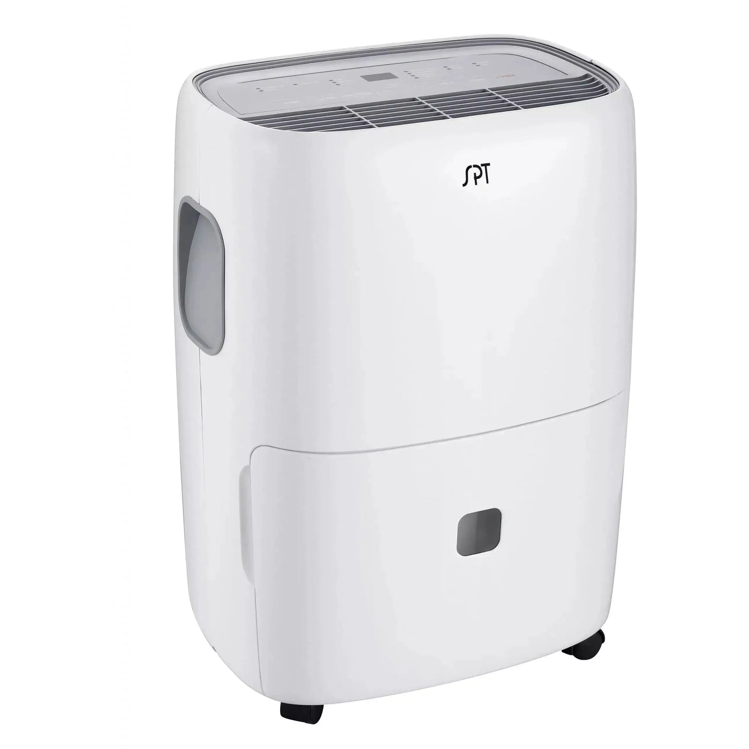 Designed to remove excess moisture from your home quietly and efficiently. A necessity for those suffering from dust mite, allergies or simply for those who wants to keep their indoor humidity at a comfortable level. Air that is too damp can cause itchy skin and nasal passages, condensation on windows, water damage to materials, mold growth and rotting of wood materials in your home. SPT dehumidifiers remove moisture from the musty air so you can enjoy year-round comfort in your home or office. Humidity level for this unit can be set as low as 35% with Low or High fan speed. Features washable air filter with reminder indicator and casters for easy mobility.